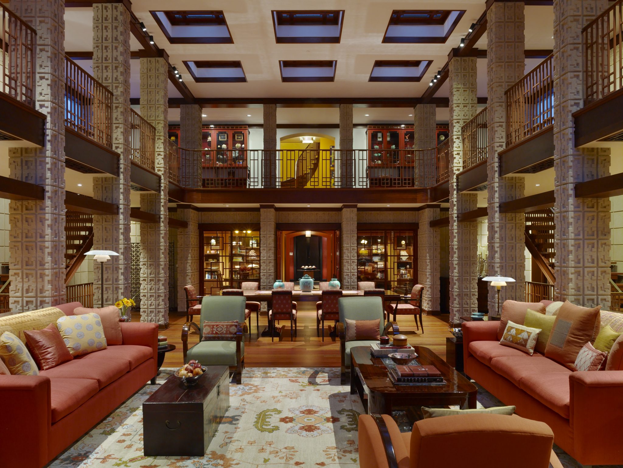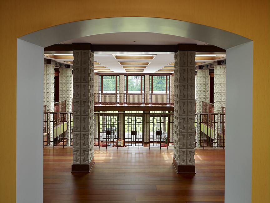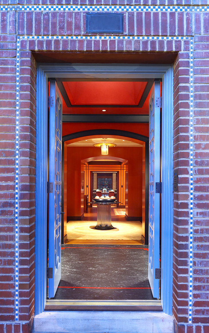 While the exterior of this home may seem unimposing, the inside boasts a Frank Lloyd Wright-inspired great room with textured walls, grand staircases, and luxurious amenities. This addition and renovation was achieved in a strict 17-month timeline.